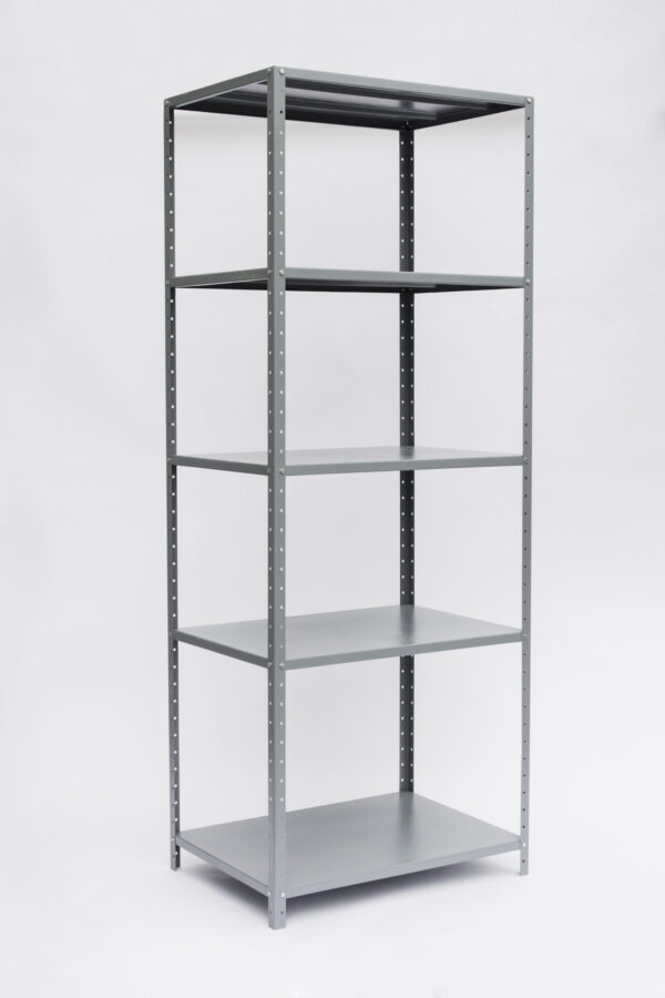 Estante de 5 charolas con pastes Cal 14. y entrepaños Cal. 22 con 2 refuerzos